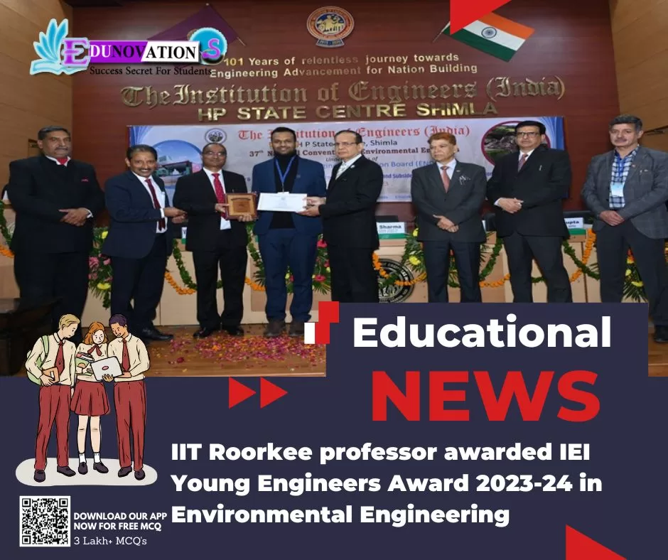 IIT Roorkee: Ankit Agarwal, professor of hydrology department, Indian Institute of Technology (IIT Roorkee), has been conferred with the IEI Young Engineers Award 2023-24 in Environmental Engineering discipline.